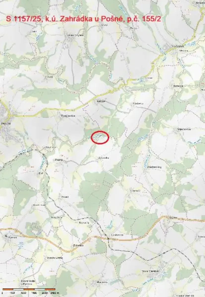 Jedná se o prodej lesního pozemku parc. č. 155/2 o výměře 3636 m2, nepravidelného tvaru, situovaného severně od obce Zahrádka, obklopeného privátními lesy. V LHP je pozemek veden jako bezlesí, nachází se na něm spontánně vzniklý různověký a různorodý převážně listnatý porost, jinak je pozemek zarostlý trávou.