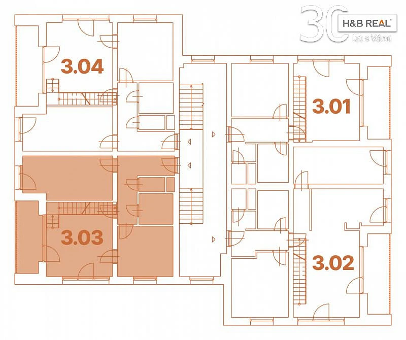 Byt č. C 3.03. se nachází v 3. NP a má dispozici 3+1. Plocha bytu: 101,2 m². Sklep: 8,3 m². Lodžie u bytu: 7,3 m². Parkovací stání: 11,25 m².
