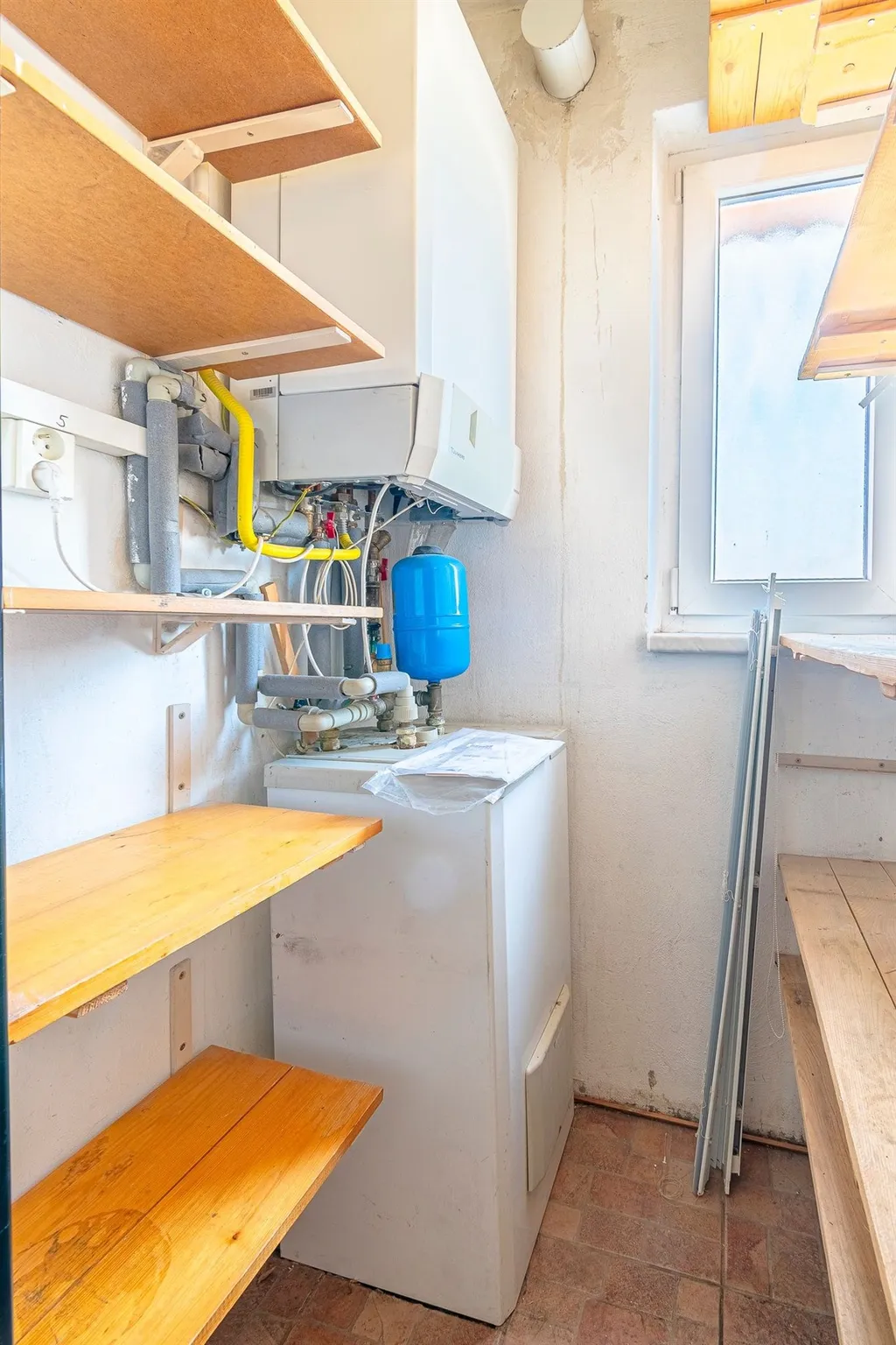 Vytápění a ohřev vody vlastním plynovým kotlem.