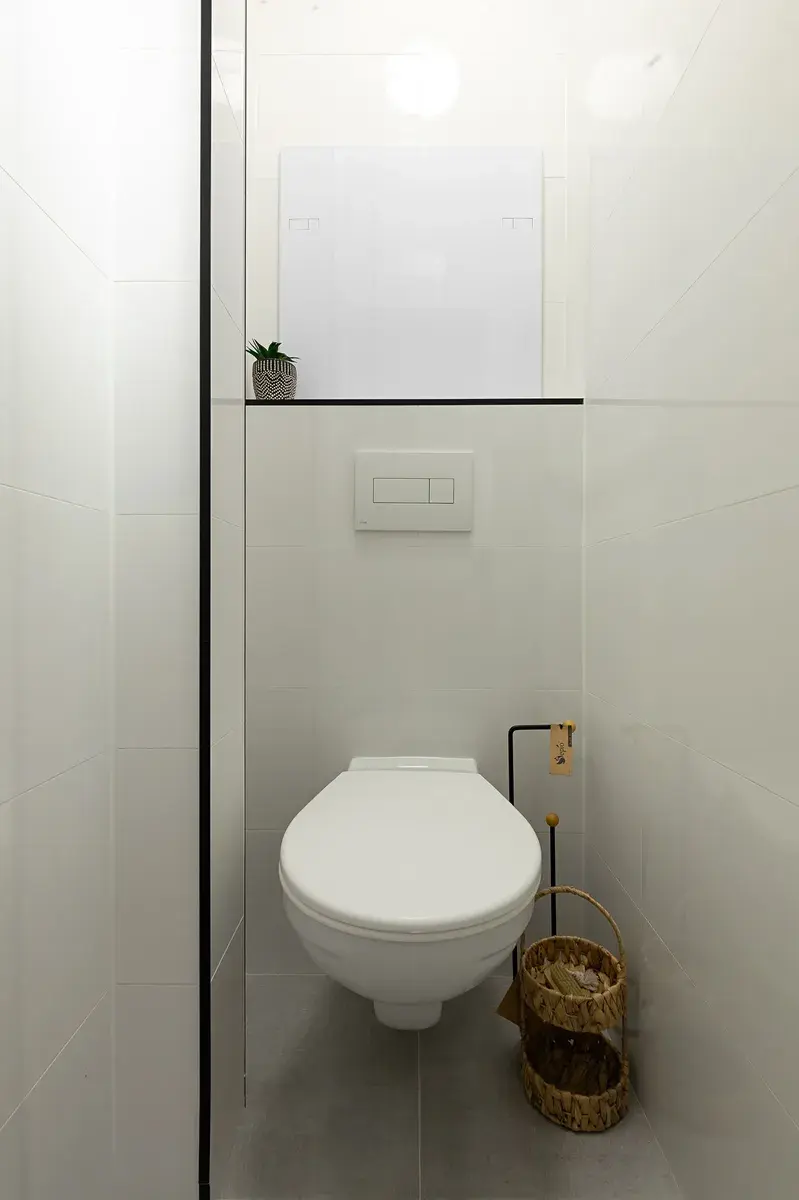 Toaleta je samostatná, rovněž s obklady a dlažbou.