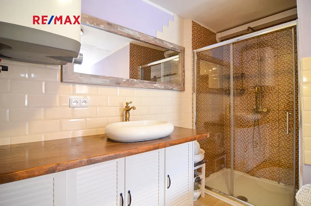 V zadní části (za kuchyní) je koupelna se sprchovým koutem a jako bonus soukromá sauna pro dokonalý relax.