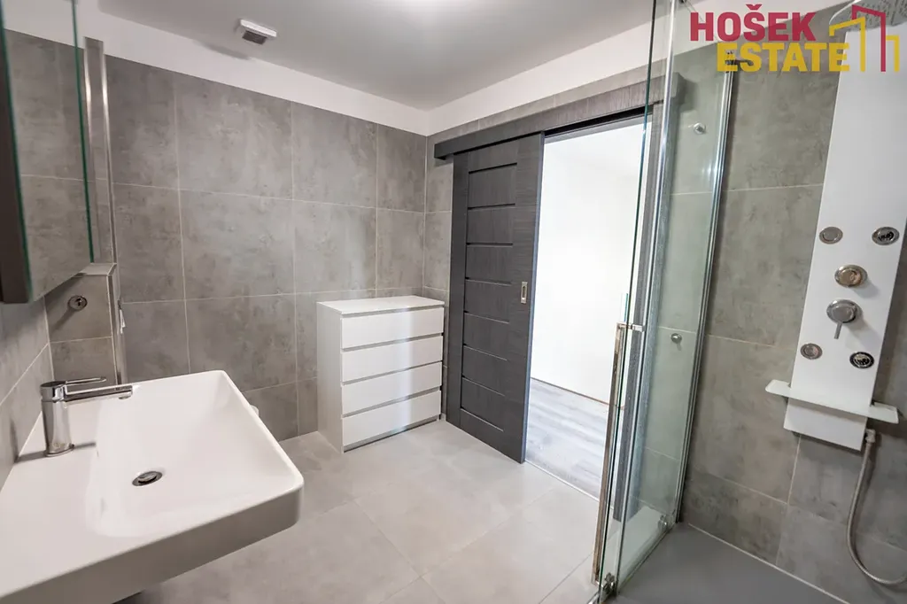 V podkroví se pak nachází 2 dětské pokoje, ložnice a hlavní koupelna se sprchovým koutem. Na půdě je pak prostor pro uložení sezónních věcí.