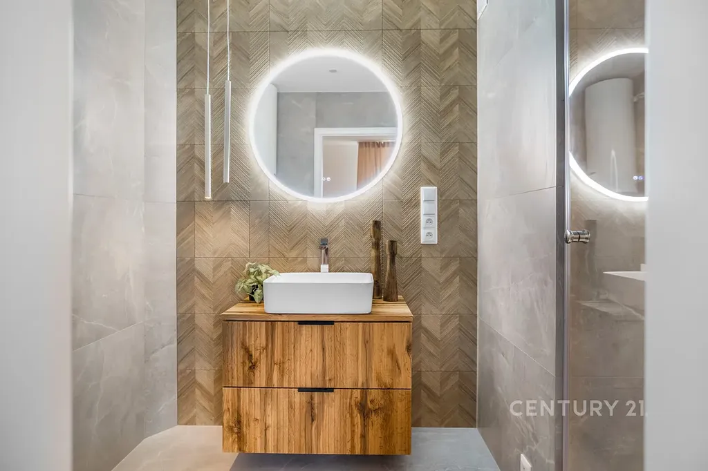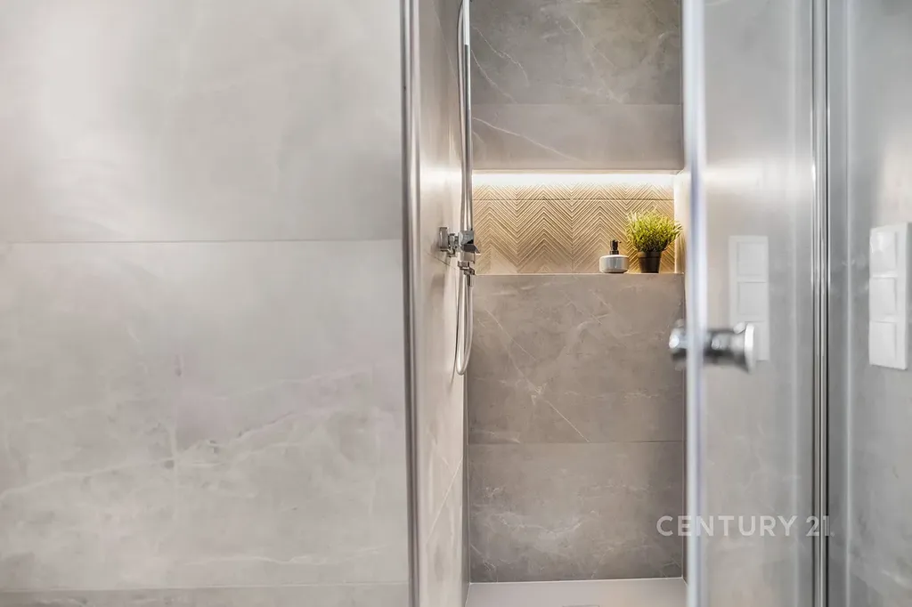 Interiér byl navržen s důrazem na čistý design, nadčasovou estetiku a maximální využití prostoru. Výsledkem je světlý, vzdušný a funkční byt, který působí jako zcela nové bydlení bez nutnosti jakýchkoliv dalších investic. Samozřejmostí jsou kvalitní materiály, designové podhledy s integrovaným osvětlením a precizně zpracovaná koupelna s důrazem na detail.