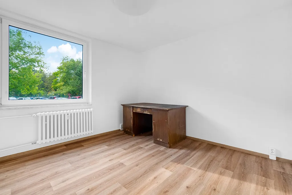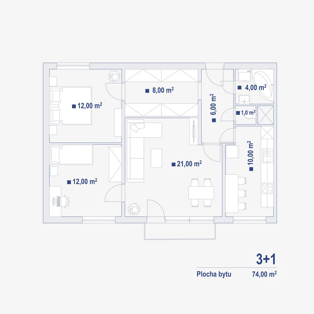 Byt se skládá ze tří samostatných pokojů, kuchyně, koupelny, samostatného WC, vstupní chodby a prostorné šatny. Součástí je také balkon s výhledem do klidného vnitrobloku a praktická sklepní kóje.