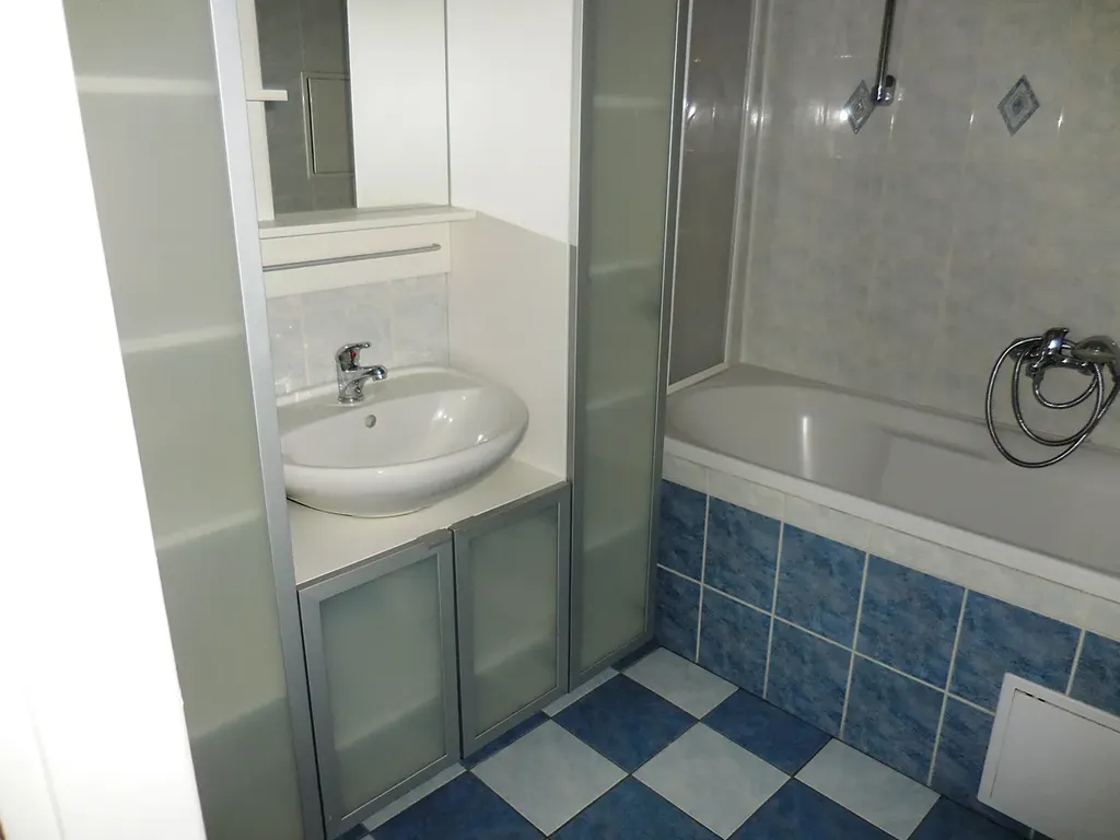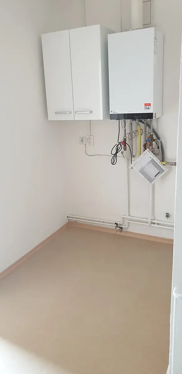 Koupelna je zděná s vanou, v kuchyňském koutě prostorná linka se sporákem a lednicí a stůl, jinak bez nábytku. Vlastní plynový kotel.