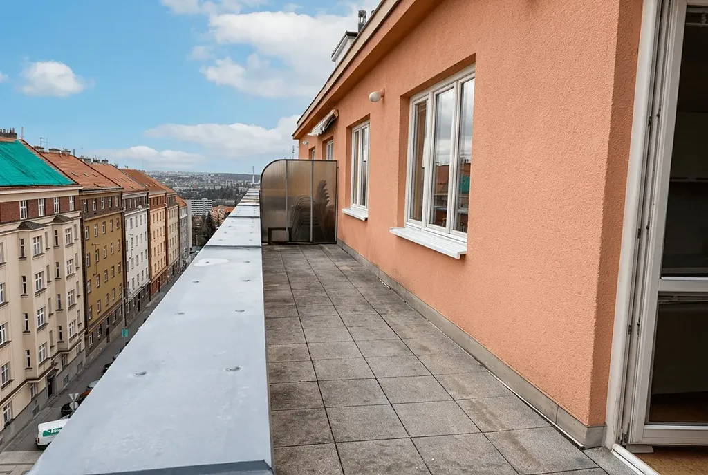 Nabízíme k prodeji byt 1+1 o podlahové ploše 52 m² s výjimečnou terasou o velikosti 17 m², situovaný v 6. (posledním) patře udržovaného domu s výtahem, v klidné části pražských Vinohrad, v ulici Písecká.