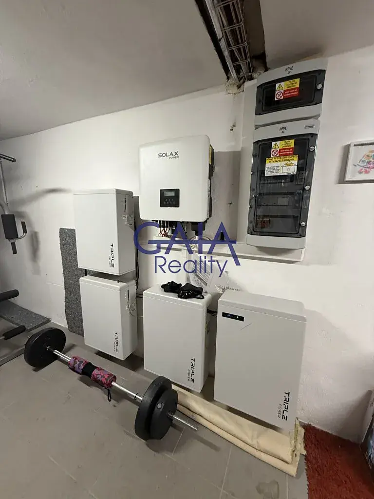 Dominantou obývacího prostoru je krbová vložka s průduchy, které rozvádí teplo do chodby/zkušebny a odkud se následně přirozeně šíří do dalších místností v domě. Kromě vytápění dřevem je dům vybaven také elektrickým podlahovým vytápěním Ecofilm-Fénix v celém domě včetně zkušebny. Velkým benefitem je fotovoltaická elektrárna o výkonu cca 12,5 kWh (30 panelů) doplněná o baterii s kapacitou 20 kWh, která v období jaro až podzim pokryje většinu spotřeby domácnosti. V domě je instalována klimatizace v obývacím pokoji, ložnici a zkušebně, přičemž v dalších pokojích v patře je připravena instalace. Dům má plastová okna s trojskly, zateplenou fasádu, střechu, stropy ve sklepech a je napojen na veřejný vodovod, elektřinu i kanalizaci, s možností opětovného připojení plynu.