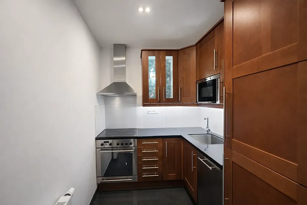 Interiér byl navržen s důrazem na nadčasový design, maximální funkčnost a vysoký standard použitých materiálů. Dominantou je designová kuchyňská linka na míru s kompletně vestavěnými spotřebiči včetně myčky nádobí.