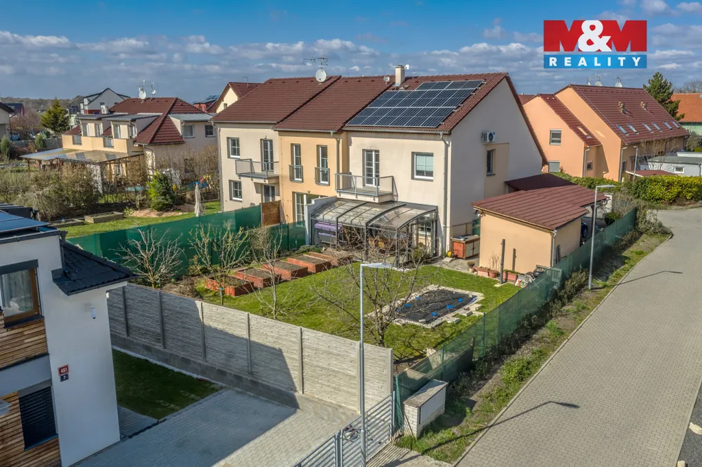 Hledáte moderní rodinné bydlení v klidném prostředí, které nabídne komfort, úsporu i dostatek prostoru? V obci Zlonín nabízíme velmi pěkný zděný řadový rodinný dům o užitné ploše 124 m² s pozemkem 452 m². Dispozice s 4 pokoji poskytuje ideální zázemí pro rodinu i pohodlné pracovní místo z domova. Ve spodní části je prostorný obývací pokoj s kuchyní a v patře jsou pak dvě ložnice a pracovna. Velkým benefitem je krytá terasa se zastřešením Alukov, balkon, garáž se sekčními elektrickými vraty, kryté parkovací stání i další venkovní místo. Praktický zahradní domek z Ytongu rozšiřuje úložné možnosti. O příjemné bydlení se stará plynový kotel, výměník na TUV kombinovaný (plyn, elektrika), krbová kamna, změkčovací úpravna vody a fotovoltaika 6,3 kWp s baterií 11,6 kWh. Klidná lokalita s výbornou dostupností vlakem, autobusem i autem. Praha autem vzdálenost 12 minut. Rychlé převzetí po dohodě.