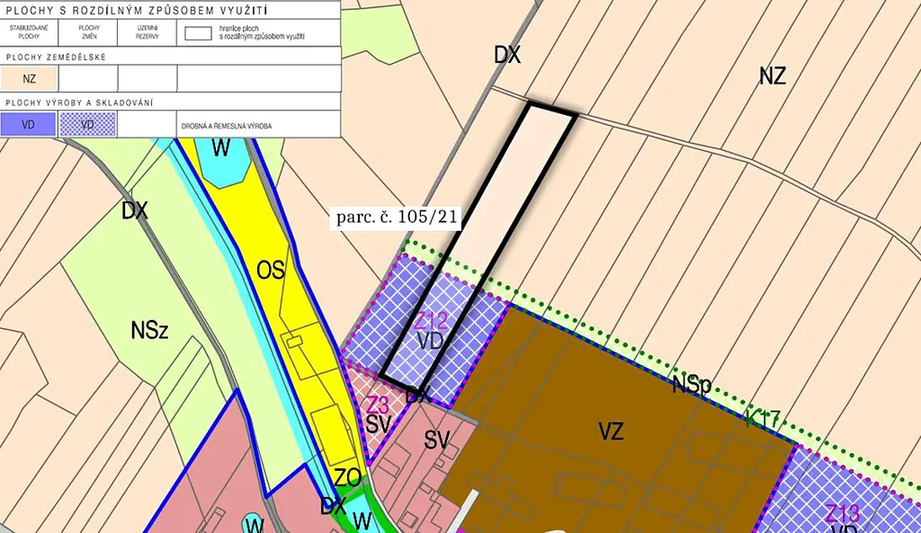 V současné době je užívána jako orná půda. Svou jižní částí se nachází v ploše, kterou obec vyhradila pro rozšíření zástavby. A to konkrétně v ploše výroby a skladování pro drobnou a řemeslnou výrobu. Může se jednat například o skladový areál, budovy pro drobnou výrobu a služby. Zapsána je na listu vlastnictví 221 pod parcelním číslem 105/21.