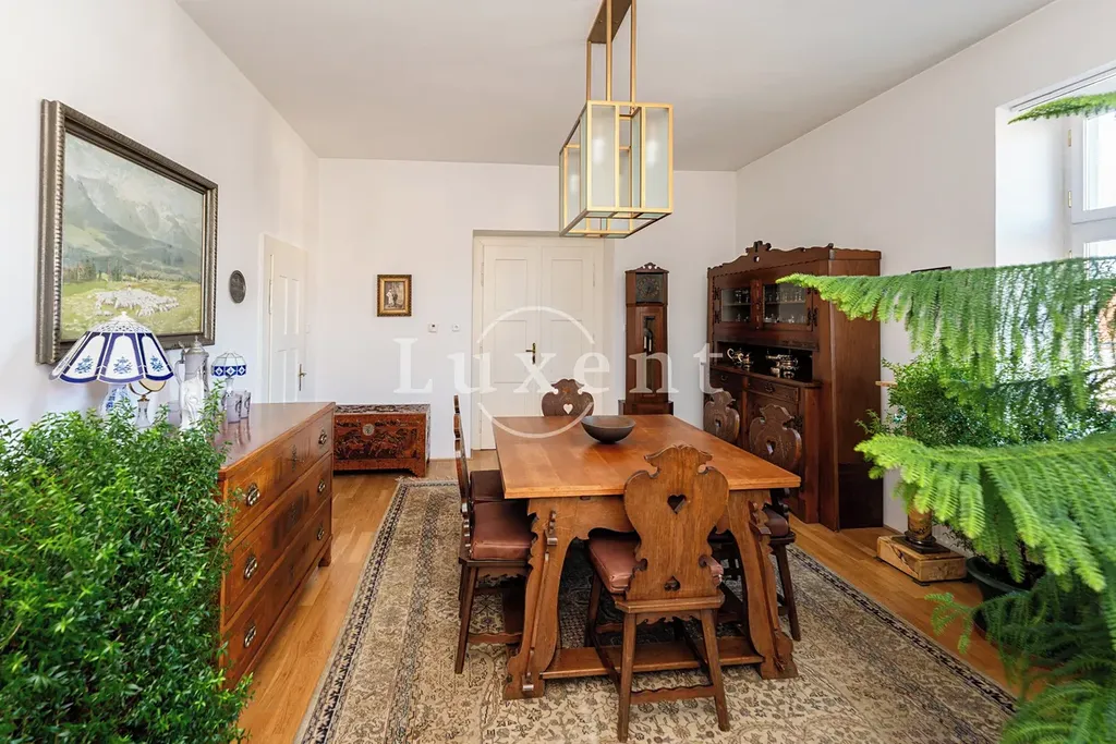 První patro disponuje stejnou plochou 121,10 m² a nabízí světlé, prostorné místnosti s vysokou variabilitou využití – vhodné pro soukromé apartmány, pracovny, ložnice nebo další funkční zóny. Citlivě zrekonstruované podkroví o ploše 72,16 m² přináší charakteristické prvky krovu a intimní atmosféru, což jej předurčuje pro privátní apartmá, ateliér, pracovnu či dětské nebo záložní pokoje. Kompletně podsklepený suterén poskytuje nadstandardní technické a úložné zázemí s širokými možnostmi dalšího využití.