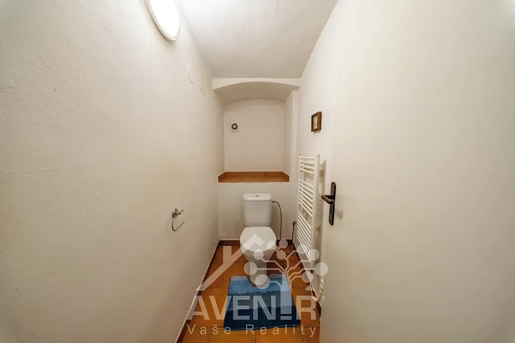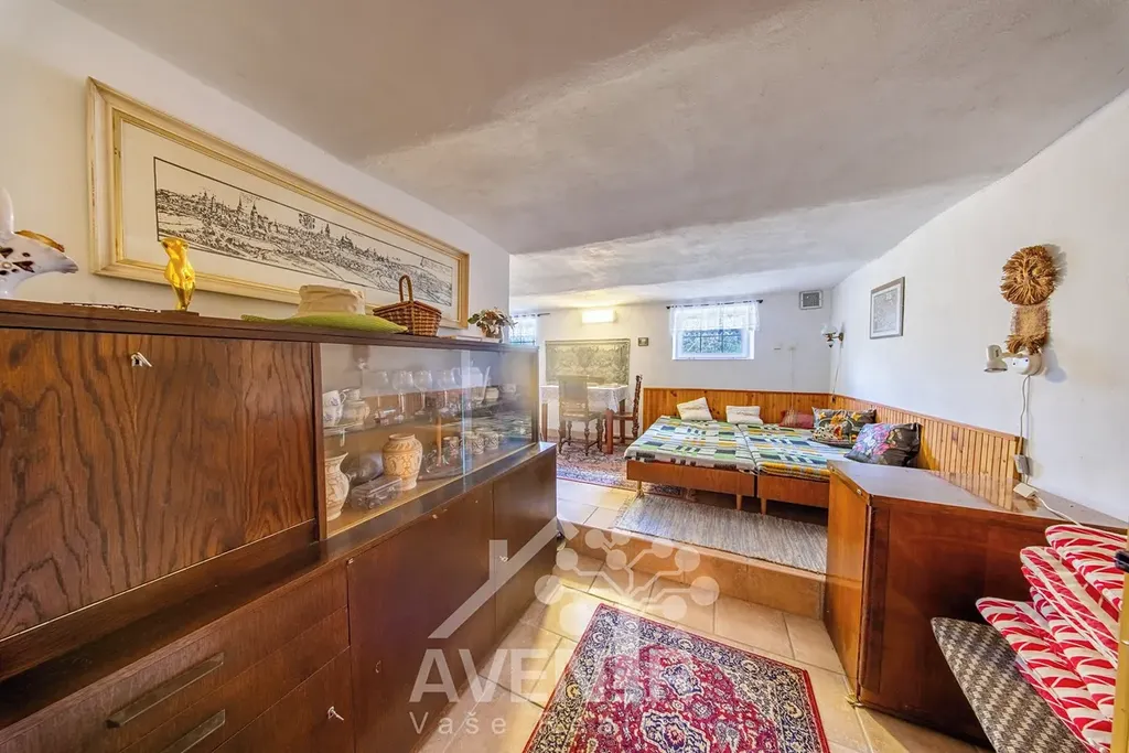 V přízemí se nachází chodba (16 m2), obývací pokoj (21 m2), kuchyňka (12 m2), ložnice (14 m2), spíž (7,8 m2), chodbička (3,9 m2) WC (3,7 m2), koupelna (7 m2), další pokoj s kuchyňkou (17 m2), sklad (3,6 m2), garáž a přístavek. Ve 2. NP se nachází ložnice (21,7 m2) a půdni prostor.
