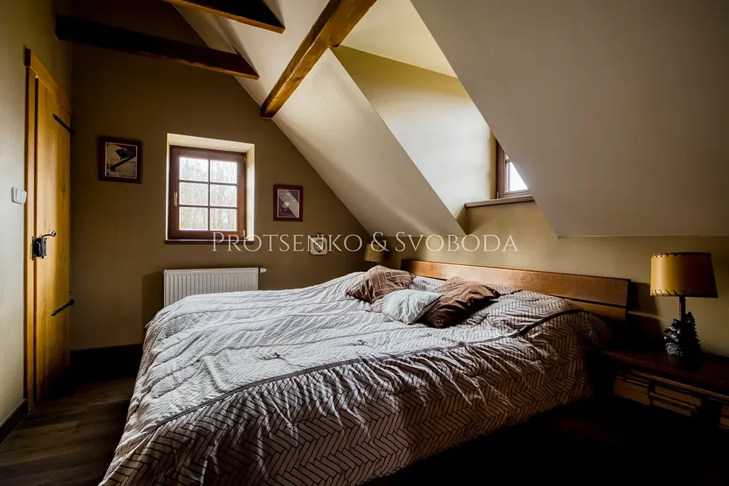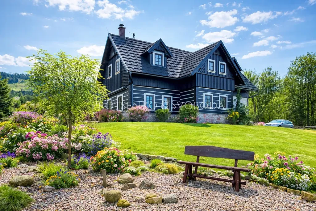 V malebném prostředí Podkrkonoší nabízíme k prodeji nádherný poloroubený rodinný dům v obci Horní Brusnice, zkolaudovaný v roce 2020. Tato výjimečná nemovitost spojuje kouzlo venkovské architektury, poctivé přírodní materiály a promyšlené technické řešení pro komfortní každodenní život. Dům je ideální jak pro trvalé rodinné bydlení, tak jako stylové rekreační sídlo.