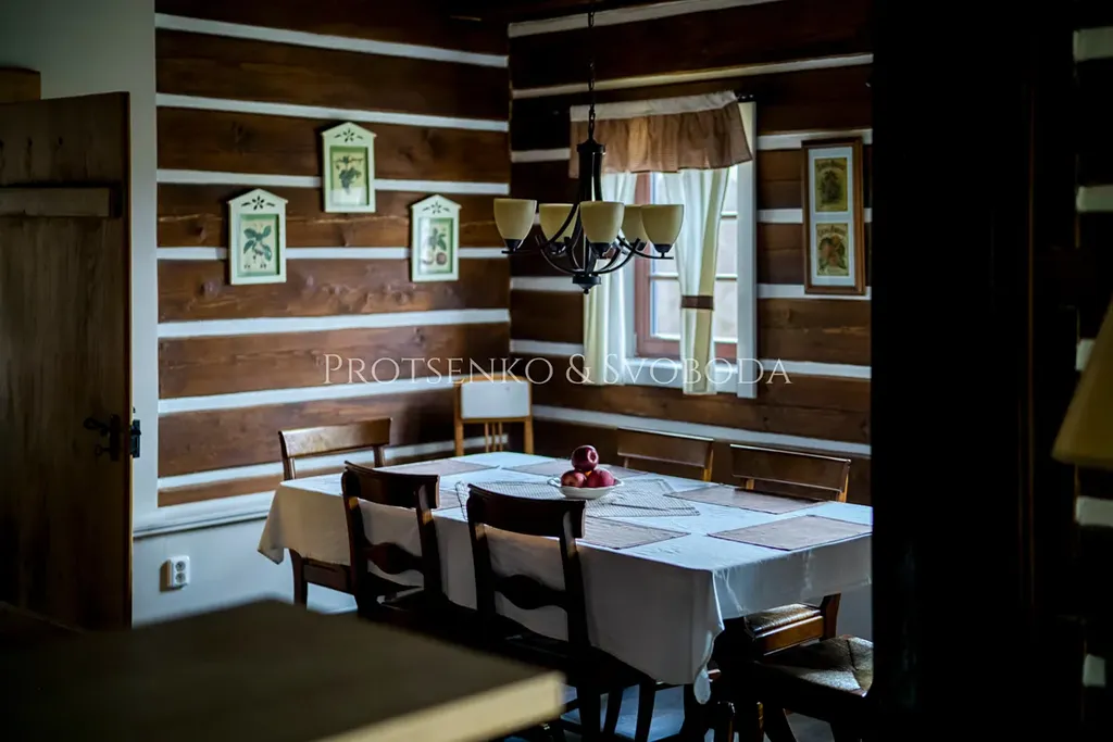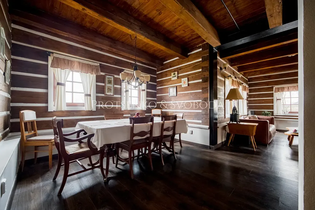Už při prvním pohledu vás okouzlí jeho elegantní vzhled inspirovaný tradiční roubenou architekturou, harmonicky zasazený do zeleně a okolní přírody. Interiér pak navazuje stejně přesvědčivě — působí útulně, vkusně a zároveň nadčasově.