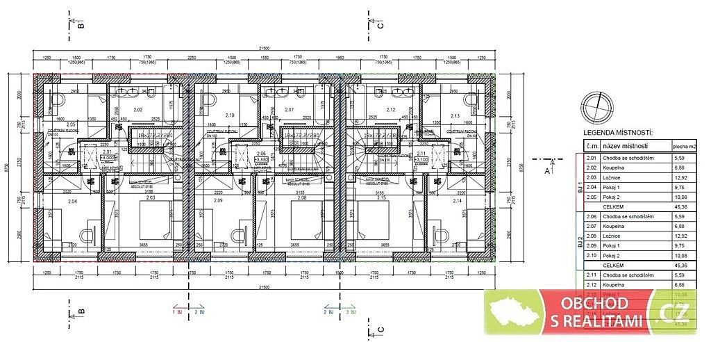 Každá z jednotek má dispozici 4+KK s užitnou plochou 94 m². V dispozičním uspořádání každého z bytů nechybí technická místnost nebo šatna! Půdorysy s legendou i pohledy přikládáme.