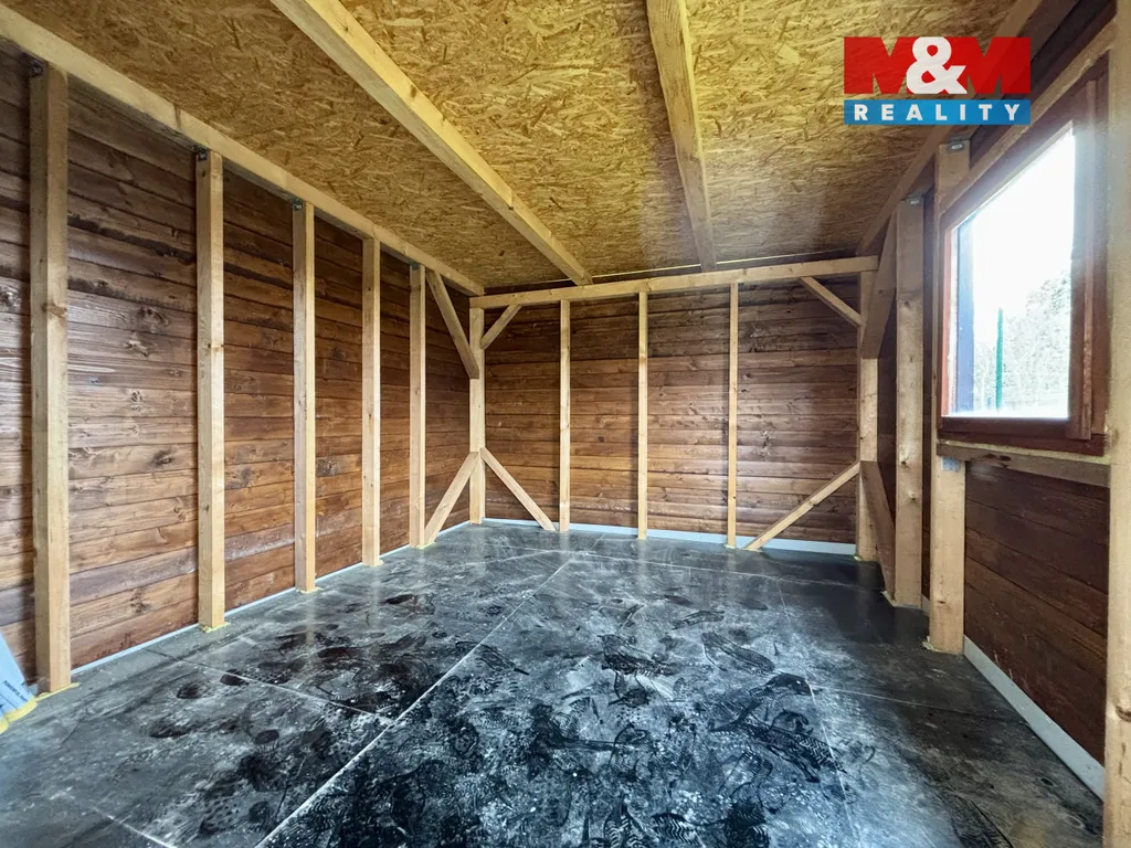 Součástí zahrady je dřevěná chatka s možností přespání o rozměrech 3×3,5 m, která poskytuje příjemné zázemí pro víkendový odpočinek. Na chatku navazuje terasa o velikosti, ideální pro posezení s rodinou či přáteli. Dále se na pozemku nachází praktická kůlna na nářadí a zavedený vodovod s pitnou vodou.