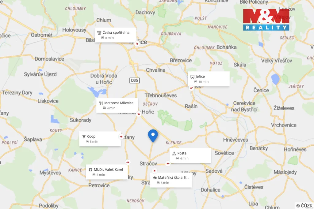 Nabízíme k prodeji soubor pozemků v krásné lokalitě o celkové výměře 11189 m2, které jsou dle územního plánu označeny jako pozemky k bydlení v rodinných domech - venkovské. Společně součástí prodeje těchto pozemků je statek ve stavu k rekonstrukci s přilehlými stájemi a garáží. V obci Stračov je obchod, pošta, mateřská škola a bankomat. Jedná se o klidnou lokalitu. Pozemky jsou přístupné z veřejné místní komunikace, která navazuje na hlavní komunikaci směr Hradec Králové. Pozemky se nachází v dojezdové vzdálenosti cca 20 minut od Hradce Králové a cca 10 minut od Hořic, kde je veškerá další občanská vybavenost. Nabídka je vhodná pro developery i soukromé investory.