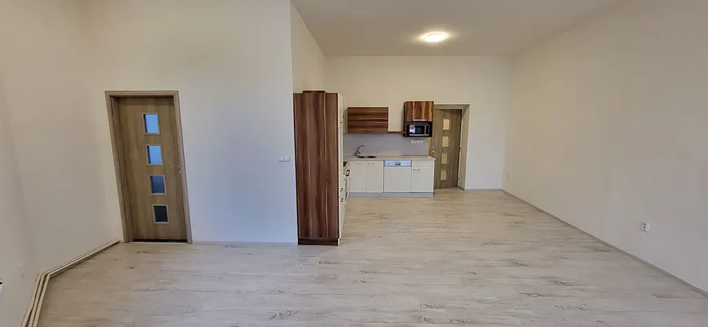 Velkometrážní byt 1+kk na náměstí Sigmunda Freuda v Příboře u NJ ve 2. NP ze 4. o celkové výměře cca 65m2. Jednotka prošla rozsáhlou modernizací v loňském roce (vše nové, v bytě nikdo nebydlel) viz foto. Měsíční náklady 12.800, vratná jistina 20.000, provize RK 1x. V případě zájmu je možno, po dohodě, využít i vedlejší místnost o výměře cca 35m2. Popřípadě lze výhledově tyto prostory spojit a vytvořit tak 2+kk o výměře cca 100m2.