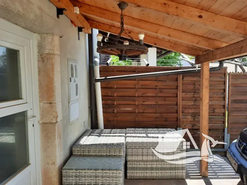 Součástí nemovitosti je terasa s výhledem na moře, která přirozeně vybízí k ranní kávě i večernímu posezení, a menší zahrada s grilem, ideální pro letní dny a setkávání s rodinou nebo přáteli.
