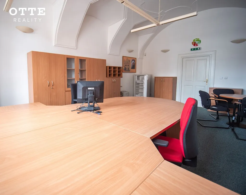 Nyní Vám nabízíme k pronájmu kanceláře v prvním patře o různých výměrách od cca 17 m2 přes výměry okolo 25 m2 až po celé podlaží o velikosti cca 247 m2. Část kanceláří má výhled na náměstí Republiky. Cena nájmu je za nezařízenou kancelář. Některé prostory jsou klimatizované. V případě zájmu o vybavenou kancelář dle fotografií, bude individuálně dohodnuta cena za zařízení. V případě dělení podlaží pro více nájemců po jednotlivých kanceláří, bude k užívání společná jednací místnost na tomto podlaží, kuchyňka a sociální zařízení. Cena za tyto prostory bude rozpočtena všem nájemcům a uživatelům tohoto podlaží.