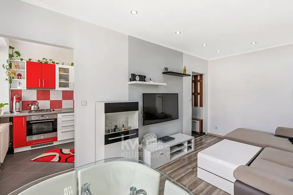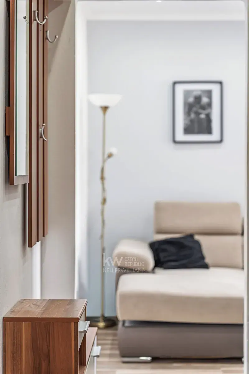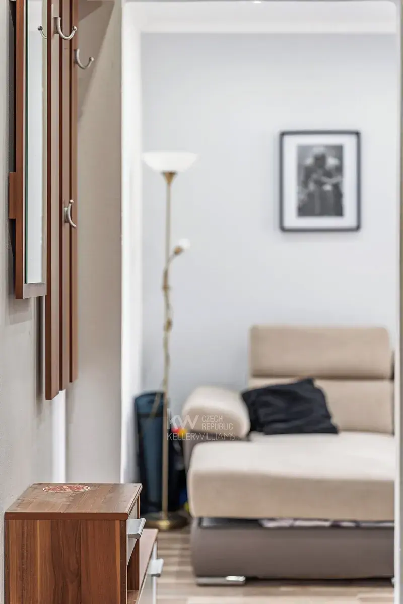 Interiér působí útulně a je ve velmi dobrém technickém stavu, byt se prodává kompletně vybavený, takže je připraven k okamžitému užívání bez nutnosti dalších investic. Dispozice je praktická a maximálně využívá dostupný prostor – byt sestává z kuchyně, obývacího pokoje, ložnice, předsíně, koupelny a samostatného WC.