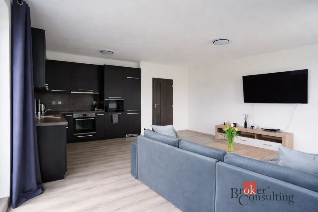 Hlavní obytný prostor s kuchyňským koutem nabízí nadstandardní velikost a vzdušnost, díky čemuž působí celý byt velmi příjemně a otevřeně. Samostatná ložnice pak poskytuje dostatek soukromí a klidu.