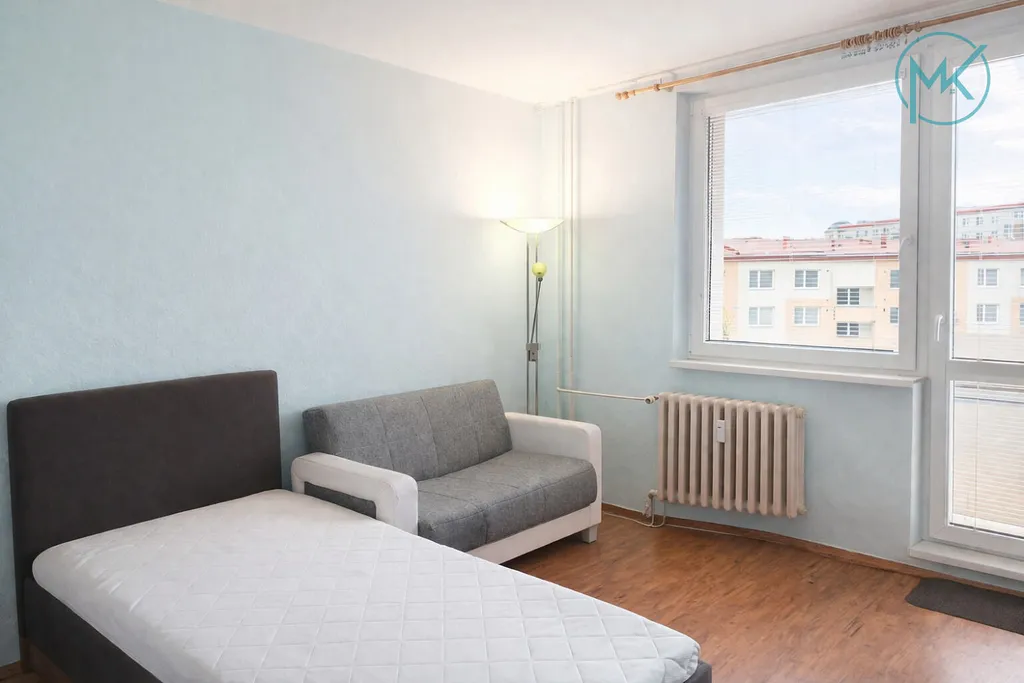 Byt je kompletně vybavený nábytkem i spotřebiči: pohodlná postel, sedačka, úložné prostory, plně funkční kuchyň včetně trouby, varné desky a lednice s mrazákem. Samozřejmostí je i pračka přímo v bytě.