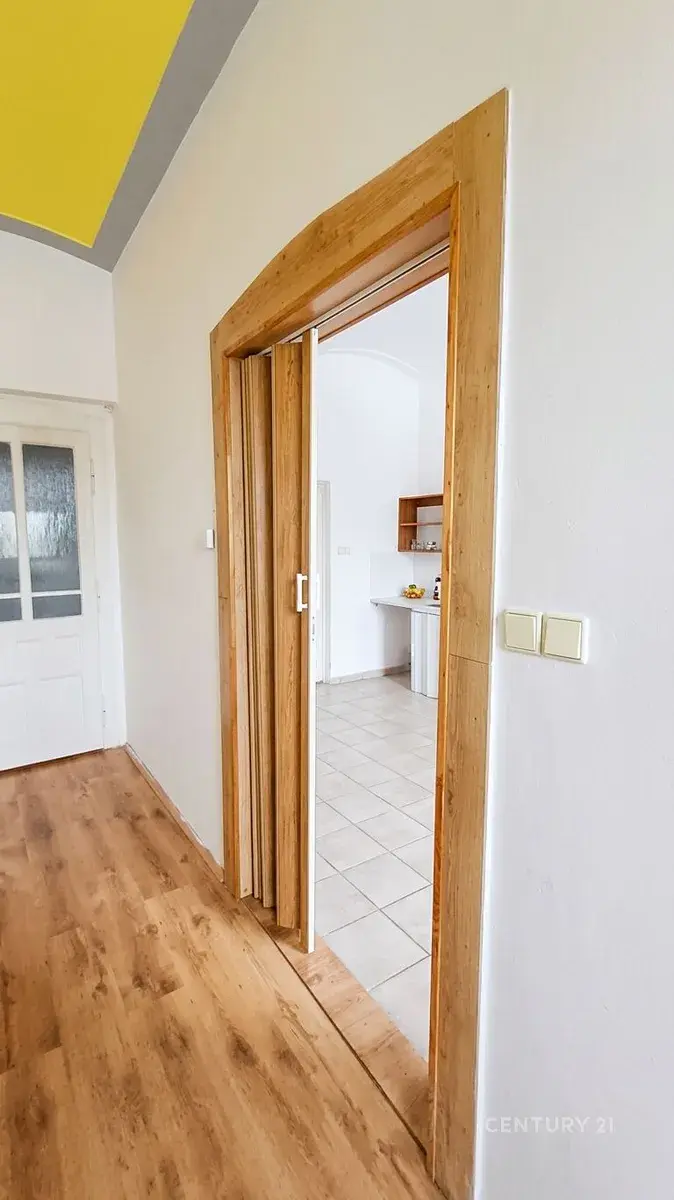 * Interiér: Vysoké stropy (možnost vestavby vnitřních pater), masivní schodiště, původní zachovalé dveře a secesní prvky.