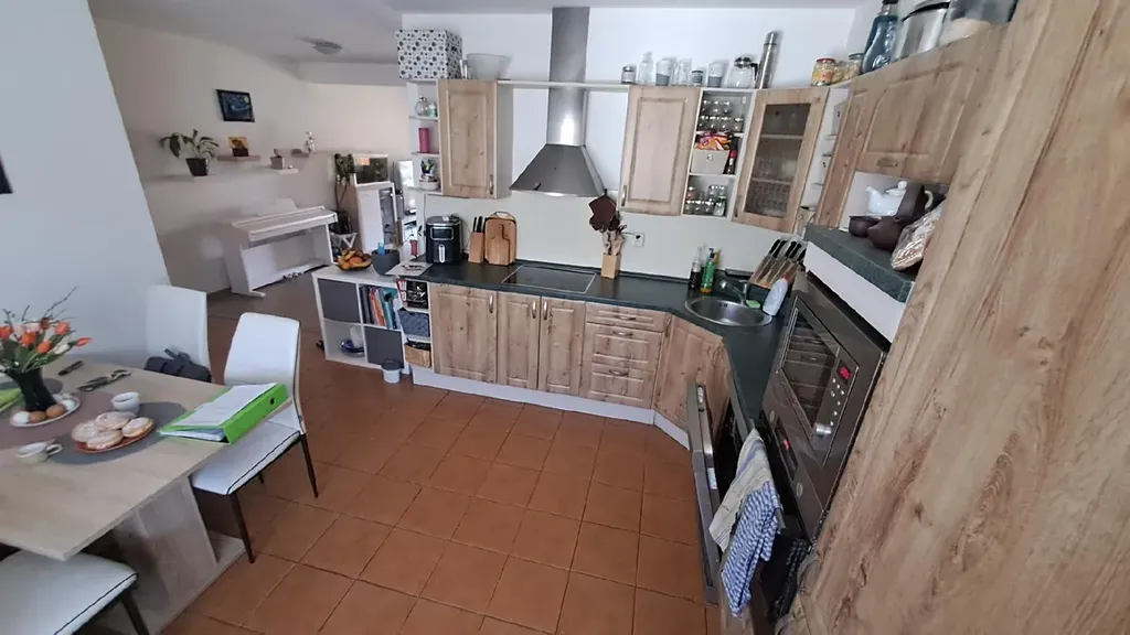 Dům typově 4+1 kdy kuchyně je s oknem a je zároveň i jídelnou. Před domem jsou dvě parkovací místa na vlastním pozemku a předzahrádka místa k parkování jsou dostatečně široká a velká, rovněž i tři ložnice v patře mají slušnou metráž. v domě jsou dva záchody ( nahoře a dole) horní "večerní" koupelna a spodní wc, kde je i pračka a sušička. Obývacímu pokuji dominují krbová kamna, dřevěné schodiště do patra. Na dům navazuje krásná dřevěná terasa s pergolou která je ideální pro trávení chvil na zahradě v soukromí. Celková plocha rovinatého a využitelného pozemku činí 198 m2, což poskytuje možnost odpočinku na vlastní zahradě, ta je za léta užívání zúrodněná je slunná vhodná pro pěstování. Zahradu z východu uzavírá dřevník, kůlnička na zahradní a jiné potřeby. Výhodou tohoto domu je vybavení solárními panely, které mohou přispět k úspoře nákladů na energie.