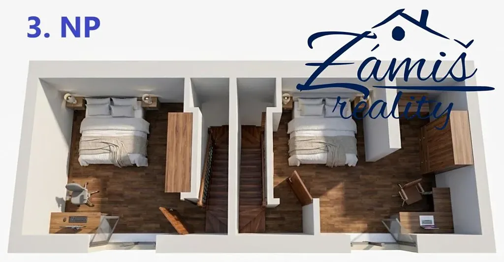 Pro dům máme vytvořenu architektonickou studii - přestavbu na 3 byty, které budou pronajímány. Tato studie je znázorněna na vizualizacích mezi fotografiemi. Ve studii je počítáno i s půdní vestavbou.