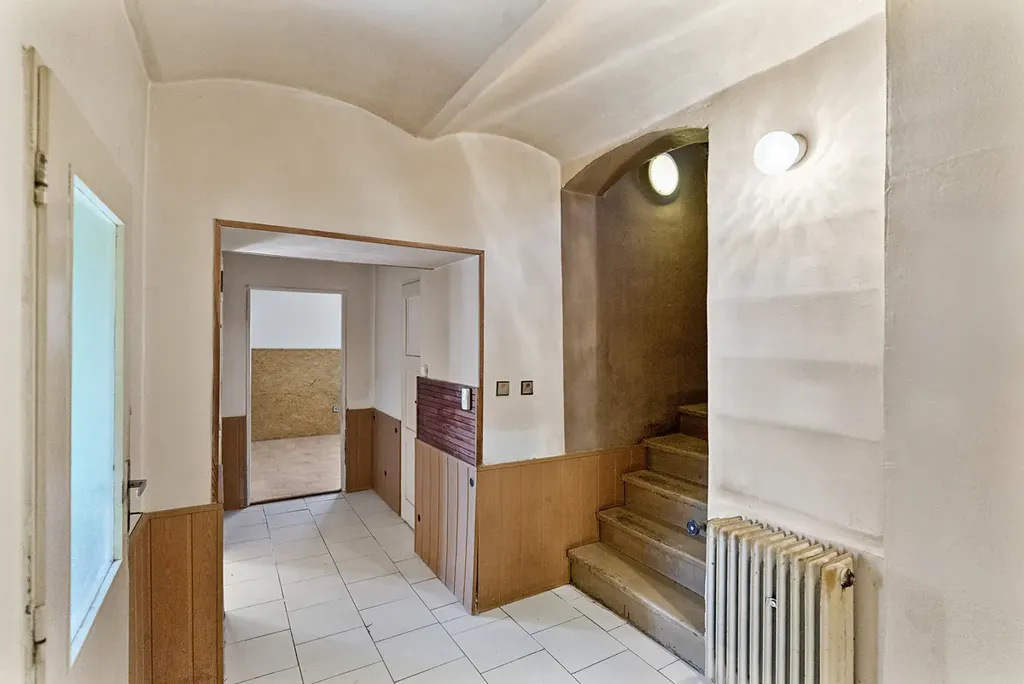 Přízemí: Vstupní zádveří, chodba, kuchyně a pokoj s klenutými stropy jako původním prvkem domu, koupelna (WC, sprchový kout, umyvadlo, přípojka na pračku) a další dva samostatné pokoje.