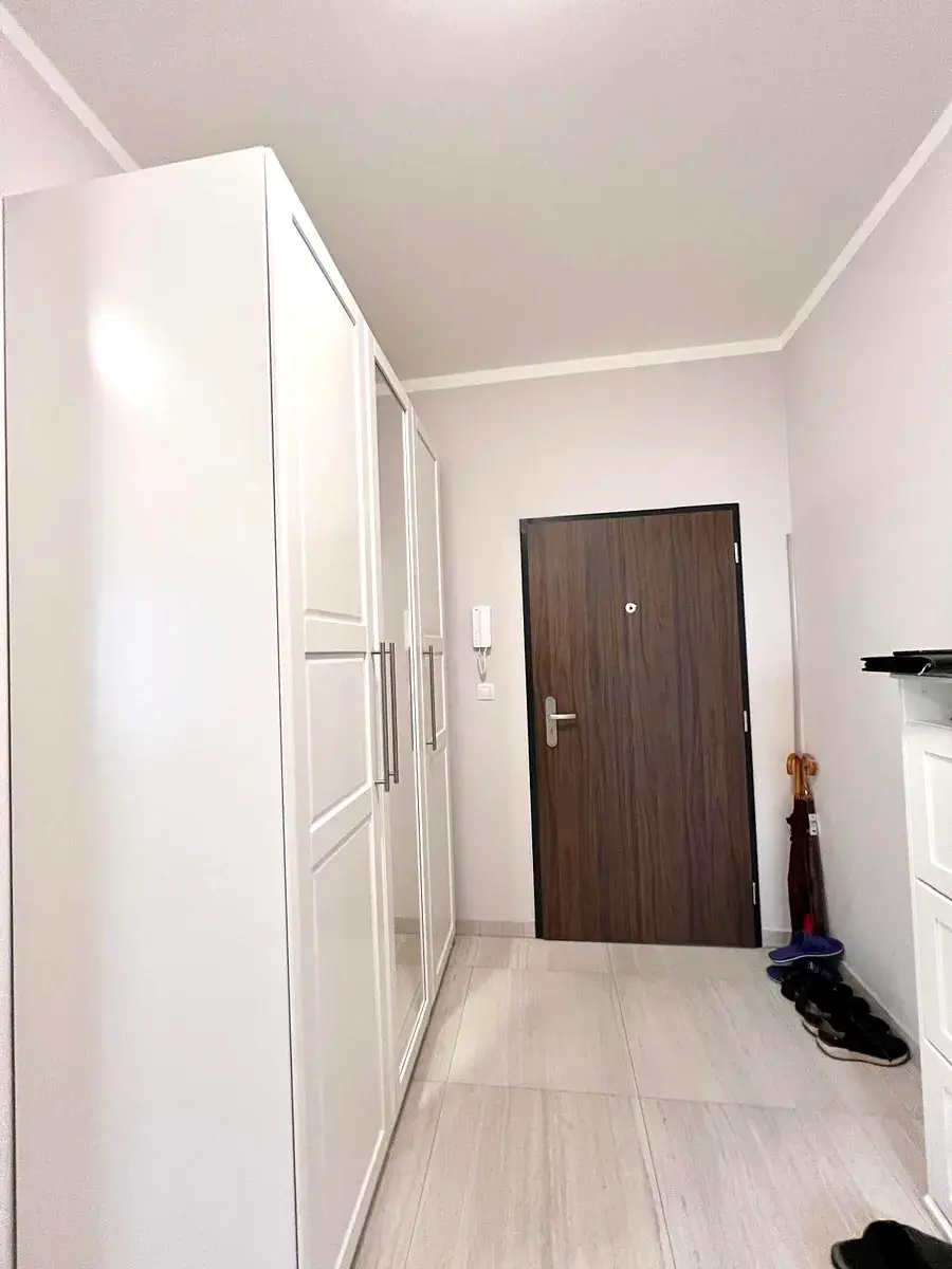 Byt má velký obývací pokoj s kuchyní a východem na terasu a zahradu, 3 ložnice s východem na zahradu, koupelnu se sprchou, vanou a WC, druhé WC je umístěno zvlášť. Byt má velkou předsíň a šatnu. Vedle vchodu do bytové jednotky je umístěna komora na odkládání věcí. Byt se prodává včetně veškerého zařízení.