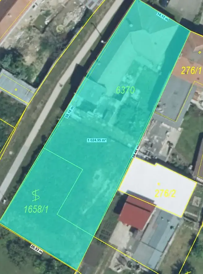 Mírně svažitý pozemek o celkové velikosti plochy 1052 m2 a tvaru nepravidelného obdélníku (uliční šíře cca 14 m) se nachází na rohu ulice Školní a chodníku navazujícího na ul. Dlážděnou; původní dům byl již odstraněn a pozemek je připraven na novou výstavbu. Nabízí se možnost stavby jednoho RD (a při schválení rozdělení pozemku stavebním úřadem i dvou RD - dle územního plánu je minimální velikost stavební parcely 500 m2, koeficient zastavěnosti 0,7, viz info ve fotogalerii).