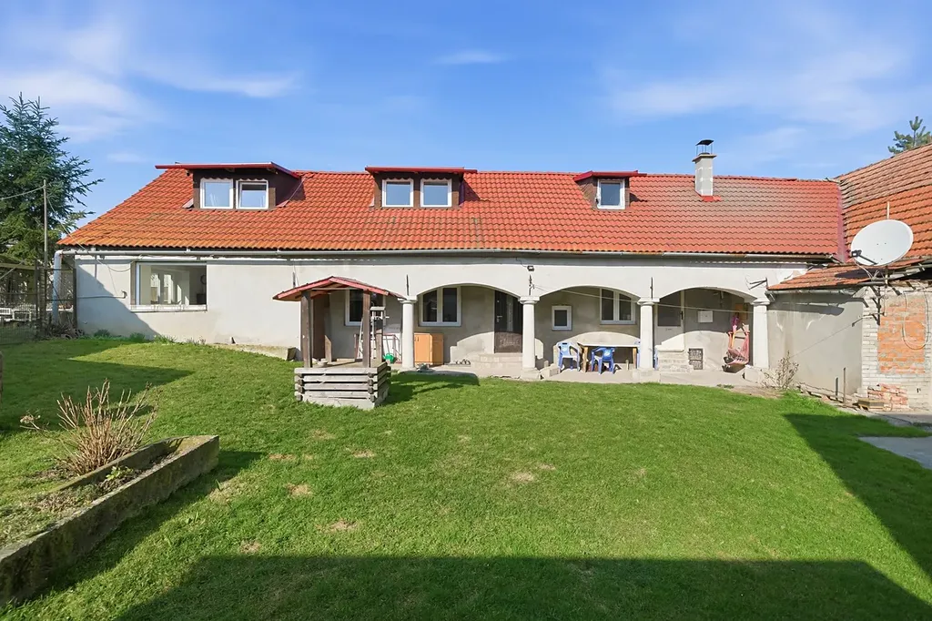 Tento prostorný dům o dispozici 3+kk a celkové užitné ploše 216 m² stojí spolu se dvorem a výměnkem na pozemku o výměře 677 m². K domu dále náleží užitková zahrada o výměře 838 m² a pozemek před domem o rozloze 362 m², ideální pro zřízení okrasné předzahrádky.