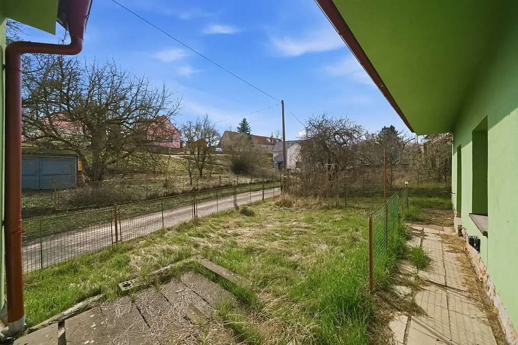 K domu náleží zahrada o výměře 457 m2 rozdělena na dva pozemky. Na větším z těchto pozemků je umístěná garáž. K domu dále náleží hospodářské budovy vybízející svým potenciálem k dalšímu využití.