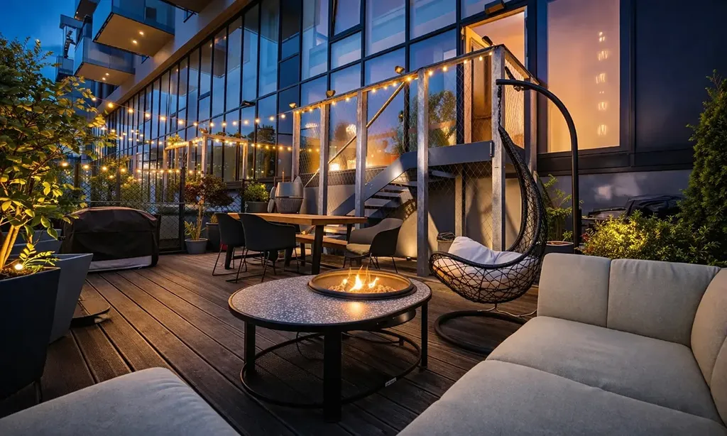 venkovní terasa s posezením a vířivkou