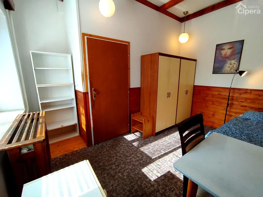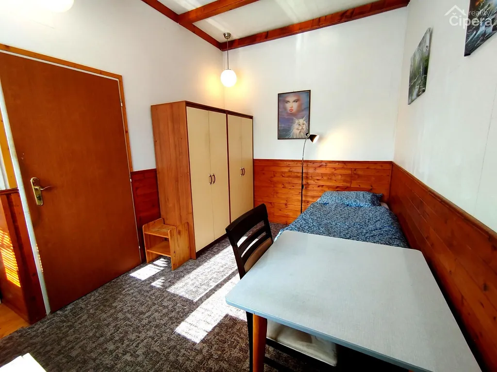Pokoj s podlahovou plochou přibližně 15m² je situován v přízemí rodiného domu se třemi podlažími. Pokoj je vybaven postelí, stolkem, skříní, lednicí a televizí. Sociální zařízení a vybavená kuchyň jsou sdílené pro celé patro.