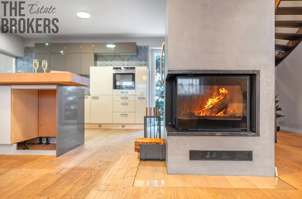 Vila disponuje velkorysým interiérem, který nabízí široké možnosti využití dle individuálních potřeb nového majitele. V přízemí se nachází reprezentativní vstupní hala, prostorná předsíň, samostatná šatna a technická místnost. Moderní kuchyň je plně vybavená nejnovějšími spotřebiči a navazuje na světlou jídelnu a obývací část. Dále zde naleznete útulnou ložnici a elegantní koupelnu.