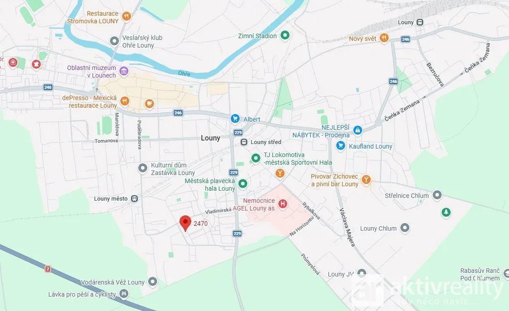 rodinných domů, parku s léčivým pramenem Luna, plavecké a sportovní haly.
