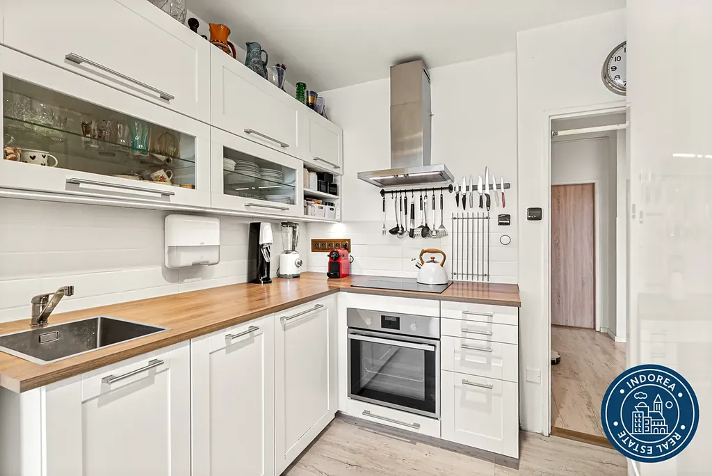 Byt o dispozici 3+1 s lodžií se nachází ve čtvrtém patře kompletně zrekonstruovaného a skvělé udržovaného panelového domu. K bytu náleží komora umístěná na patře přímo u bytu a také navíc ještě sklep. Další nespornou výhodou je sdílené parkování, které je vyhrazené pouze pro vlastníky bytových jednotek. A to hned za domem.
