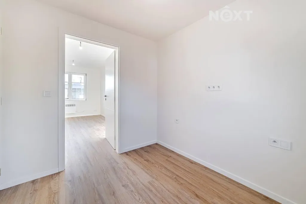 Rozdělení ploch: Pokoj s kuchyňským koutem (17,85 m2), prostorná předsíň (4,4 m2), plně vybavená koupelna se sprchovým koutem (2 m2) a samostatné WC (1,4 m2)