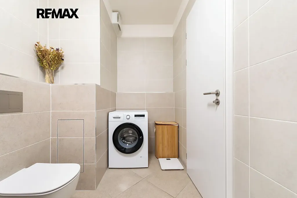 Vybavení zahrnuje vinylové podlahy, dlažbu, bílé stěny, plastová okna, bezpečnostní dveře; teplá voda a vytápění je zajištěno připojením na centrální teplovod; plně vybavenou designovou kuchyňskou linkou, která obsahuje moderní vestavěné spotřebiče (lednici, mrazák, digestoř, mikrovlnnou troubu, varnou desku a myčku nádobí vše od výrobce BOSCH), kuchyňský stůl a židle, rohová pohovka a kávový stolek, velkoplošná LED TV a sound-bar od výrobce LG, rozkladací gauč a psací stůl v pracovně (menším pokoji), manželská postel a noční stolky. Sytém rekuperace vzduchu je v každém pokoji. Z obývacího pokoje máte přístup na slunný balkón, kteřý nabízí místo k relaxaci nebo posezení. V koupelně je keramická dlažba, bílé keramické umyvadlo, obdelníková vana, zrcadlo s podsvícením, pračka BOSCH. Díky velkým oknům je byt plný přirozeného světla a nabízí vzdušný a prostorný interiér. Orientace bytu je na východ, tudíž budete mít dostatek světla. Výhled z oken je na soukromý vnitroblok, kde se v létě dá odpočínou a grilovat. Velkou výhodou je, že před budovou není další zástavba.