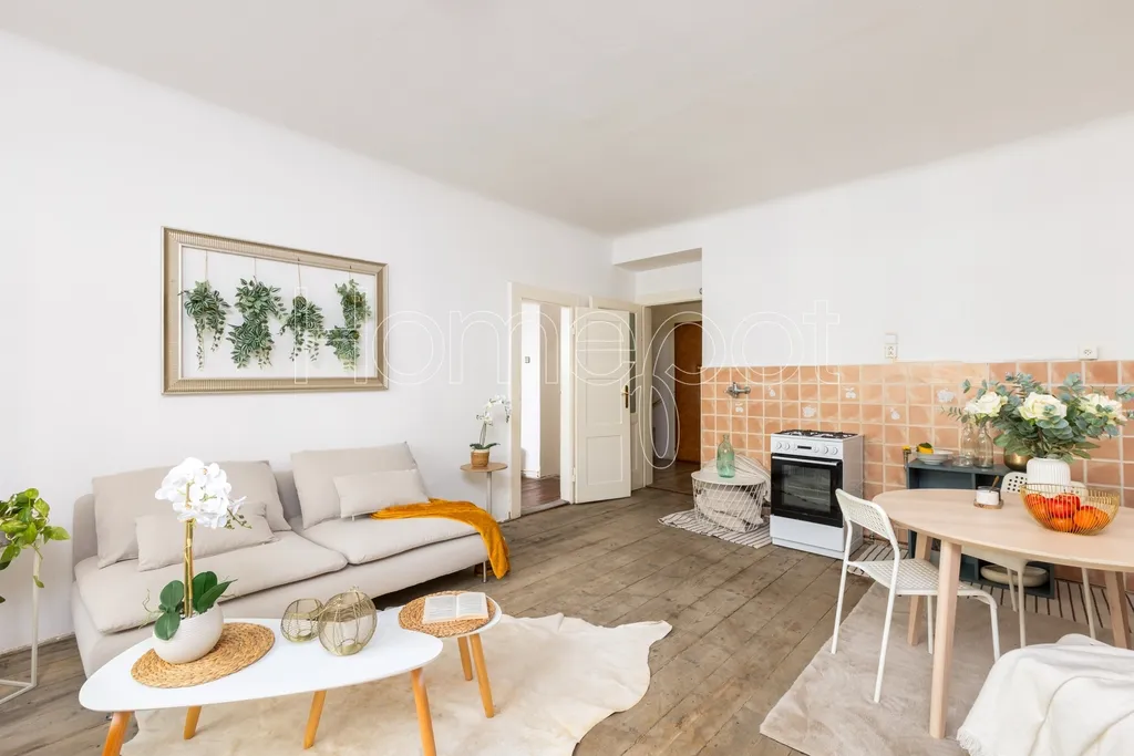 Tento velmi světlý byt, kde světlo během dne dělá svoji práci – ráno je jiné než odpoledne – se nachází ve 2. nadzemním podlaží historického činžovního domu v ulici Jirečkova, v jedné z nejživějších částí Prahy 7. Podlahová plocha činí 53,1 m².
