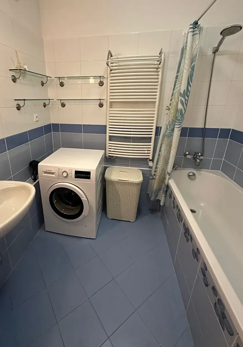 Pronájem pěkného, komfortního bytu 2+kk s balkonem, sklepem a parkovacím stáním v podzemních garážích domu. Ulice Babická, Praha 4. Celková plocha bytu včetně terasy je 71m2. Byt disponuje obývacím pokojem s kuchyní a vstupem na prostorný balkon - terasu, ložnicí se vstupem na terasu, samostatnou šatnou se skříněmi a komodou, koupelnou s vanou a samostatným WC, prostornou předsíní se skříněmi a botníkem, komorou v bytě a komorou na chodbě domu přímo vedle vstupu do bytu, dále je vybaven zánovní kuchyňskou linkou se spotřebiči, lednicí, horkovzdušnou troubou, myčkou a v koupelně pračkou dle fotodokumentace. Na podlahách plovoucí podlahy a dlažby. Byt se nachází ve 4.NP, je situován na východ a disponuje krásným výhledem do zeleně. Parkovací stání je zahrnuto v ceně nájmu. Byt je víceméně ihned k nastěhování. Vzhledem ke špatným zkušenostem s pronájmem cizincům, majitel preferuje českého nájemce bez domácích mazlíčků. Kauce 1x nájem s poplatky + první nájemné při podpisu nájemní smlouvy + odměna RK ve výši jednoho měsíčního nájmu bez poplatků. Doporučuji prohlídku.