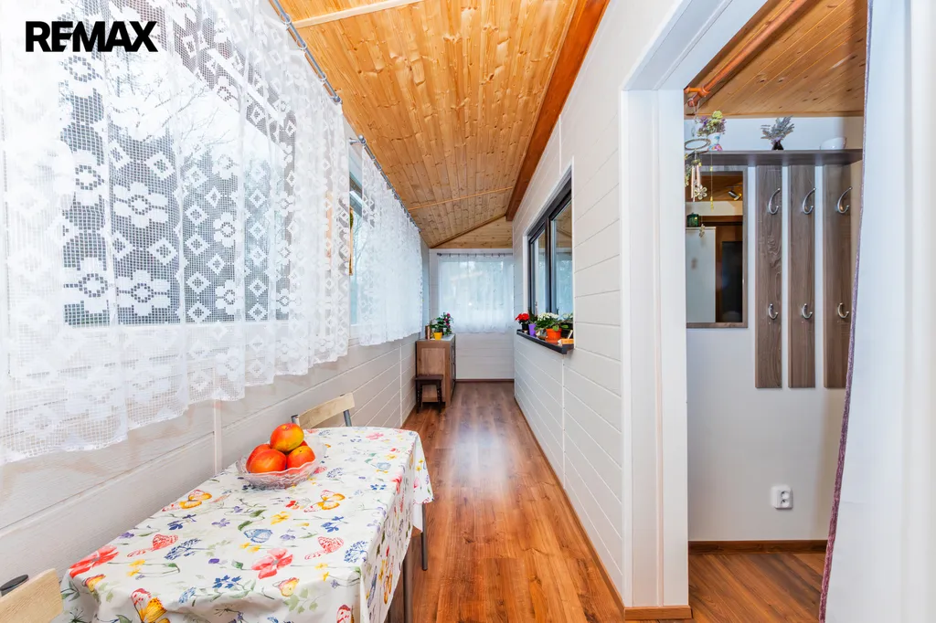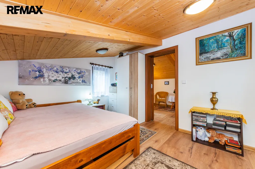 Chata byla postavená na klíč specializovanou firmou v roce 2020. Dispozičně je řešena velmi prakticky - vstupní předsíň plynule navazuje na verandu, která byla stavebně upravena (zasklena a zastřešena) a plnohodnotně začleněna do obytného prostoru. Dále vstupujeme do útulného obývacího pokoje, který je prakticky propojený s kuchyňským koutem, na který navazuje koupelna se sprchovým koutem a toaletou. Po točitých schodech se dostaneme do patra, kde jsou situovány dvě ložnice.