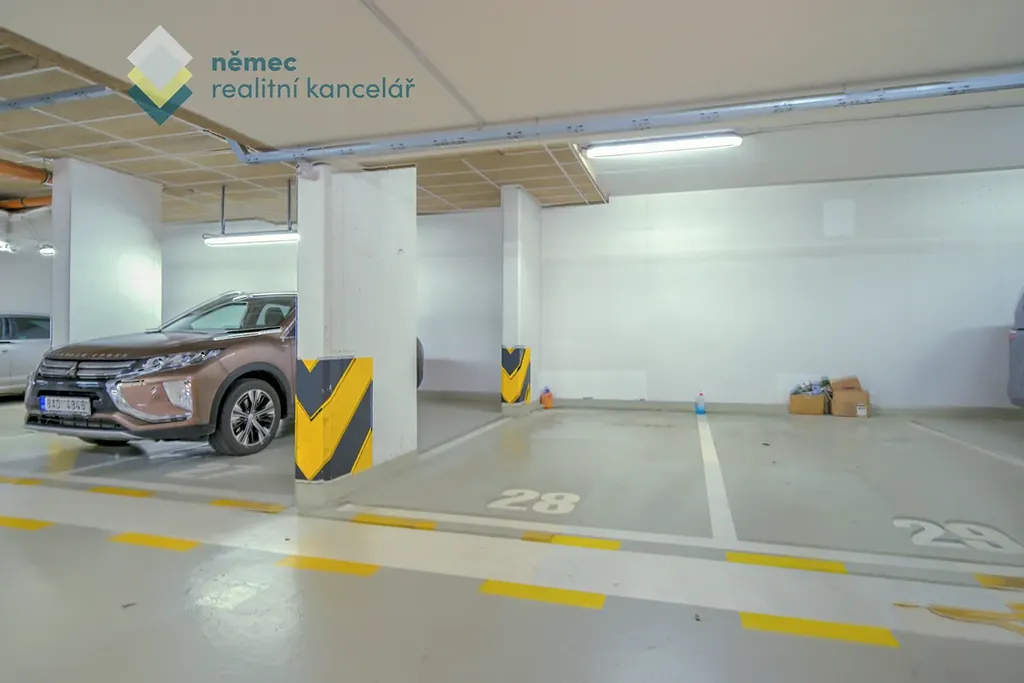 Příslušenství bytu tvoří široké garážové parkovací stání v 2. PP této novostavby, s vjezdem z ulice Nad Smetankou, a druhé, jedno z mála venkovních parkovacích stání (za 1800,- Kč / měsíc), které je praktické, protože je přímo před vchodem do domu z ulice V Třešňovce a je opatřeno sklopnou parkovací zábranou.