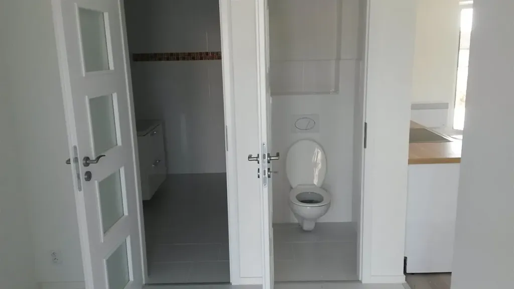Dispozice domu nabízí prostorný a světlý obývací pokoj s kuchyňským koutem a jídelnou, tři samostatné pokoje, koupelnu s prostorem pro pračku, samostatné WC a vstupní halu. Kuchyň je plně vybavena (trouba, sklokeramická deska, myčka).