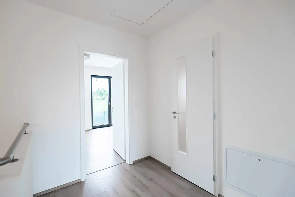 Jedná se o novostavbu rodinného domu (Energetická třída B - velmi úsporná) se dvěma bytovými jednotkami. Každá z jednotek je se samostatným vchodem, ke každé náleží vlastní oplocená zahrádka s terasou a pergolou 5,45x3m s přímím vstupem z obývacího pokoje a s zahradním domkem 2x2,5 m, dvě vymezená parkovací stání na uzavřeném/oploceném pozemku s pojezdovou bránou na DO. Udržovaný trávník s automatickou sekačkou.