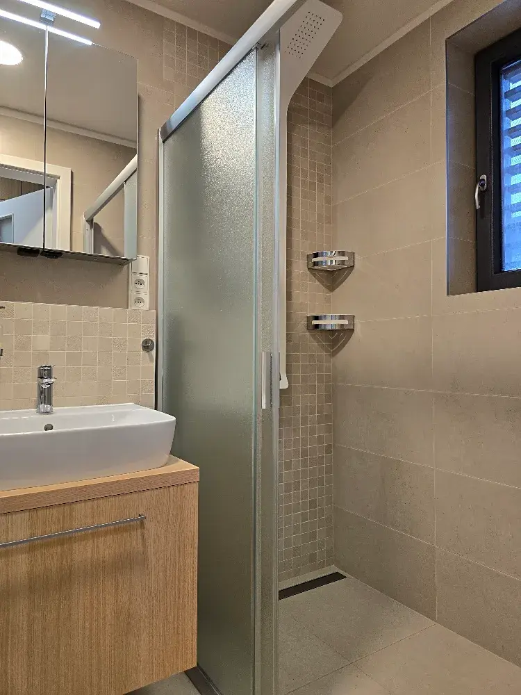 Jednotka má vlastní elektro kotel, jednotlivé místnosti mají individuální termostat ovládající podlahové topení, videozvonek, koupelnová sanita je od společnosti Vitra, Grohe, v přízemí kombinované WC s bidetovou sprškou, sprcha se sprchovým masážním panelem, protihluková mezi bytová izolace, osazena všechna svítidla, vestavěné garnyže, elektrické venkovní žaluzie, alarm, videokamery se záznamníkem.
