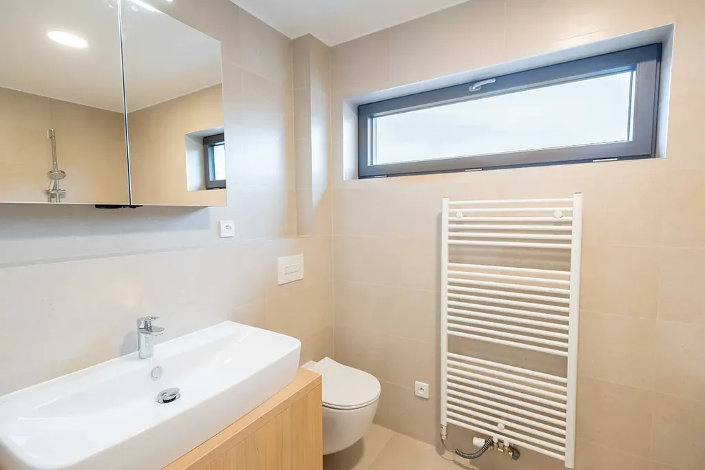 Teplovodní podlahové vytápění bez radiátorů pod okny s maximálním pohodlím rovnoměrně byt/dům ohřívá, elektronická regulace vytápění v každé místností, minimální náklady na vytápění. Odhadové náklady na provoz bytu: elektro vč. topení - 5000 Kč/měs, služby (voda, kanalizace) - 2000 Kč/měs, odpady za osobu – 80 Kč/ měs. internet optický 350 Kč. Celkové náklady cca 7000 Kč/měs.